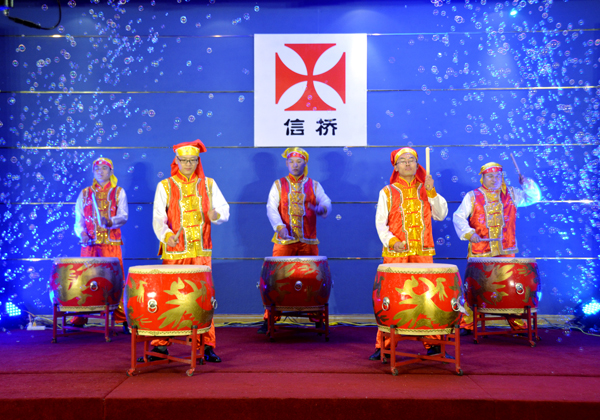 晚會在開場鼓中拉開序幕,高亢的歌曲,精彩的反串表演,激情的笛子獨奏等節(jié)目,特別是“信橋之歌”展現(xiàn)了信橋人積極奮進(jìn)的精神風(fēng)貌。周年慶的創(chuàng)意蛋糕上“專業(yè)”“做精”也展現(xiàn)了信橋公司的市場經(jīng)營理念。