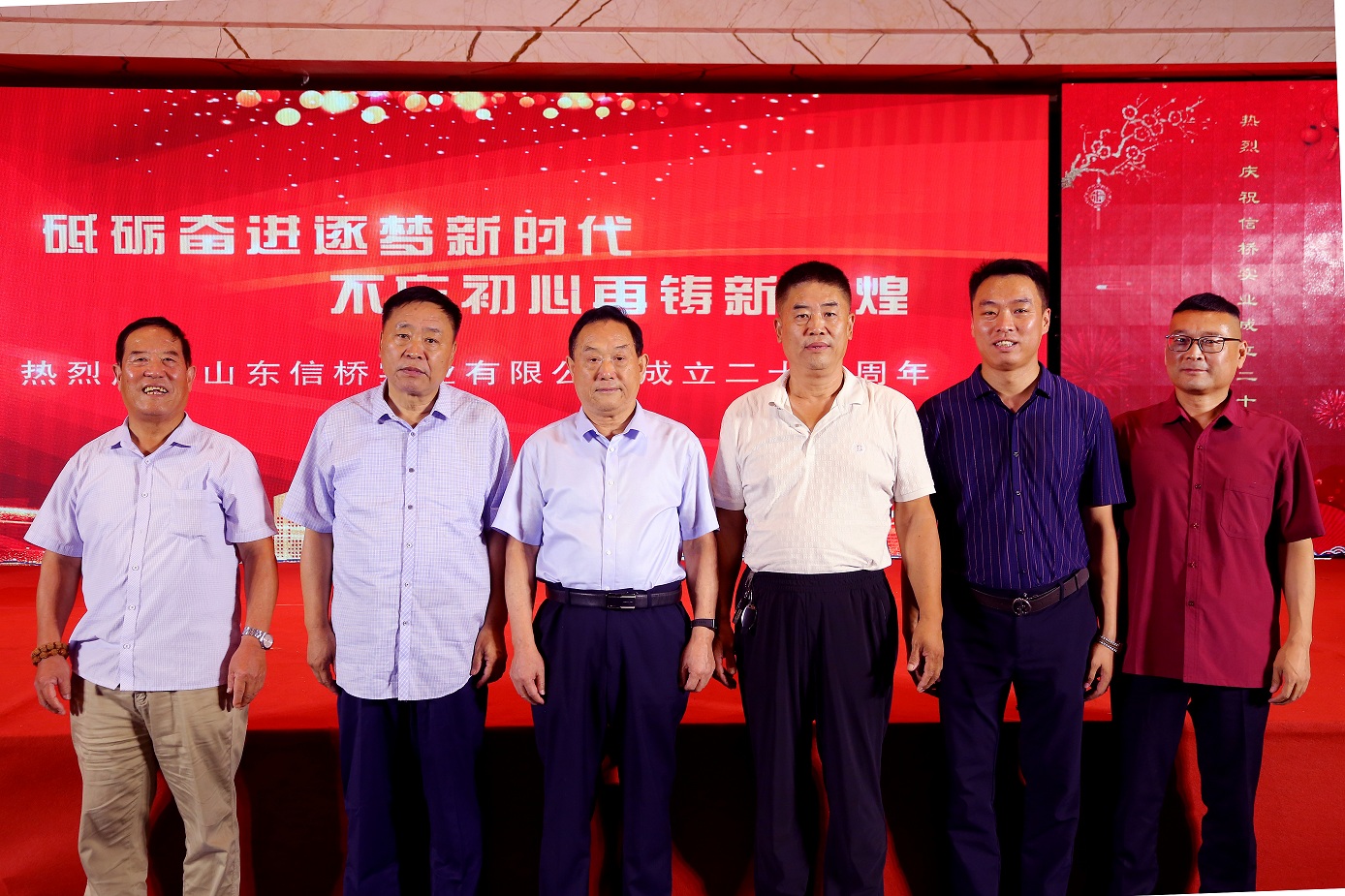 歲月如歌,風(fēng)霜如畫,二十七年彈指一揮間,山東信橋?qū)崢I(yè)有限公司(以下簡(jiǎn)稱山東信橋)迎來了二十七周年的生日。二十七年來,信橋人在激烈的市場(chǎng)競(jìng)爭(zhēng)中奮力拼搏、砥礪前行,接受了市場(chǎng)風(fēng)風(fēng)雨雨的洗禮,取得了累累碩果。為了慶祝這一特殊的日子,2021年8月8日,以“拼搏進(jìn)取,開創(chuàng)新時(shí)代”為主題的山東信橋二十七周年慶典活動(dòng)在寶盛大酒店舉行。
