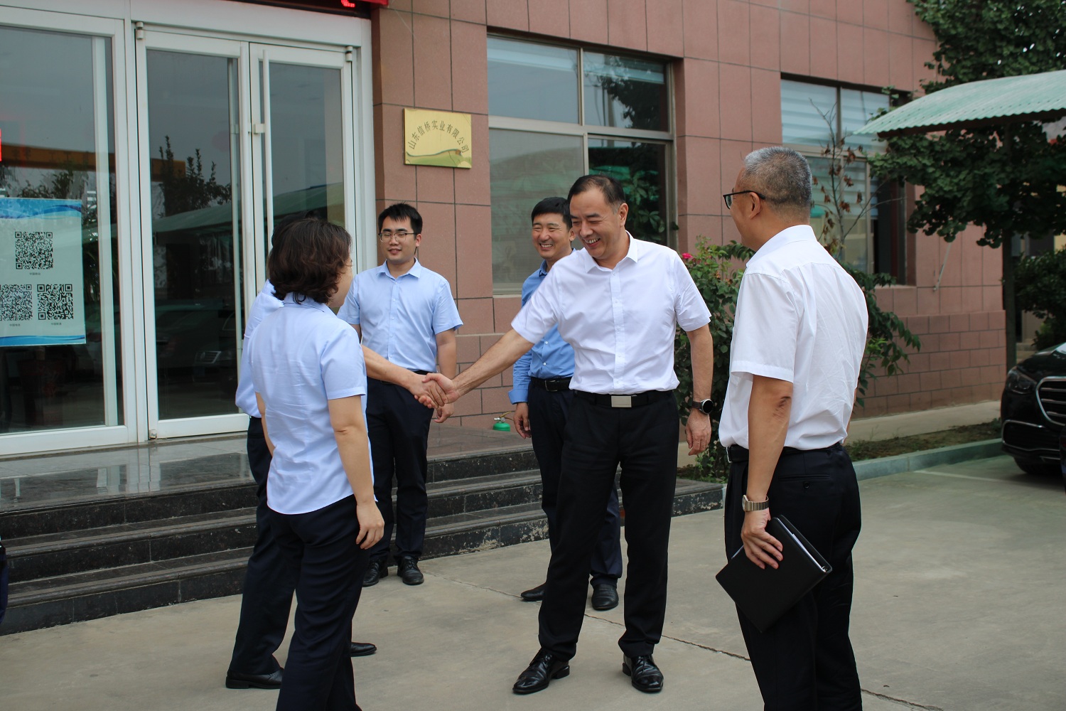 山東信橋?qū)崢I(yè)有限公司董事長徐立波、山東信橋?qū)崢I(yè)有限公司總經(jīng)理徐宏、山東信橋?qū)崢I(yè)有限公司副總經(jīng)理葛文光、山東信橋?qū)崢I(yè)有限公司副總經(jīng)理石振偉、山東信橋?qū)崢I(yè)有限公司銷售部代表趙鵬、郭慶國、李曉婷等熱情接待并座談交流。