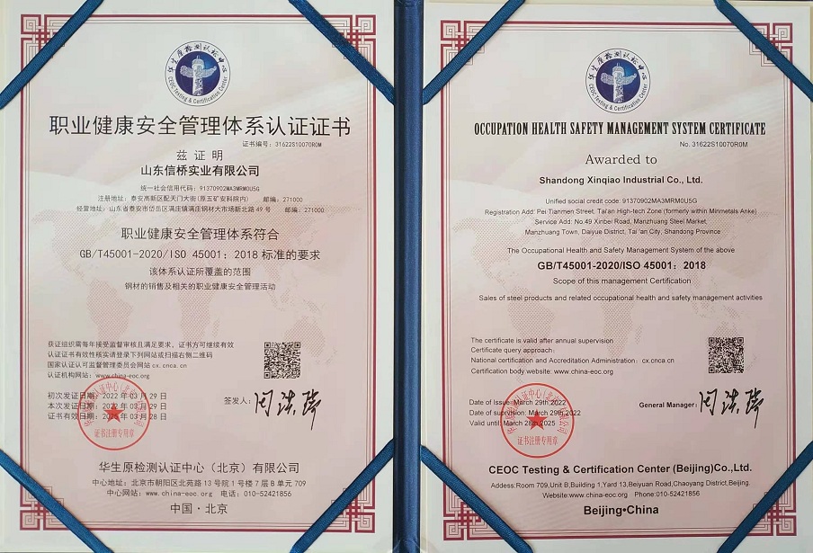 職業(yè)健康安全管理體系認(rèn)證證書(shū)