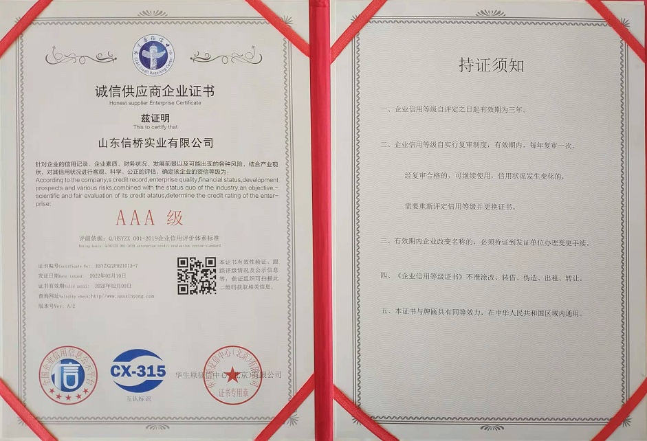 誠(chéng)信供應(yīng)商企業(yè)證書(shū)