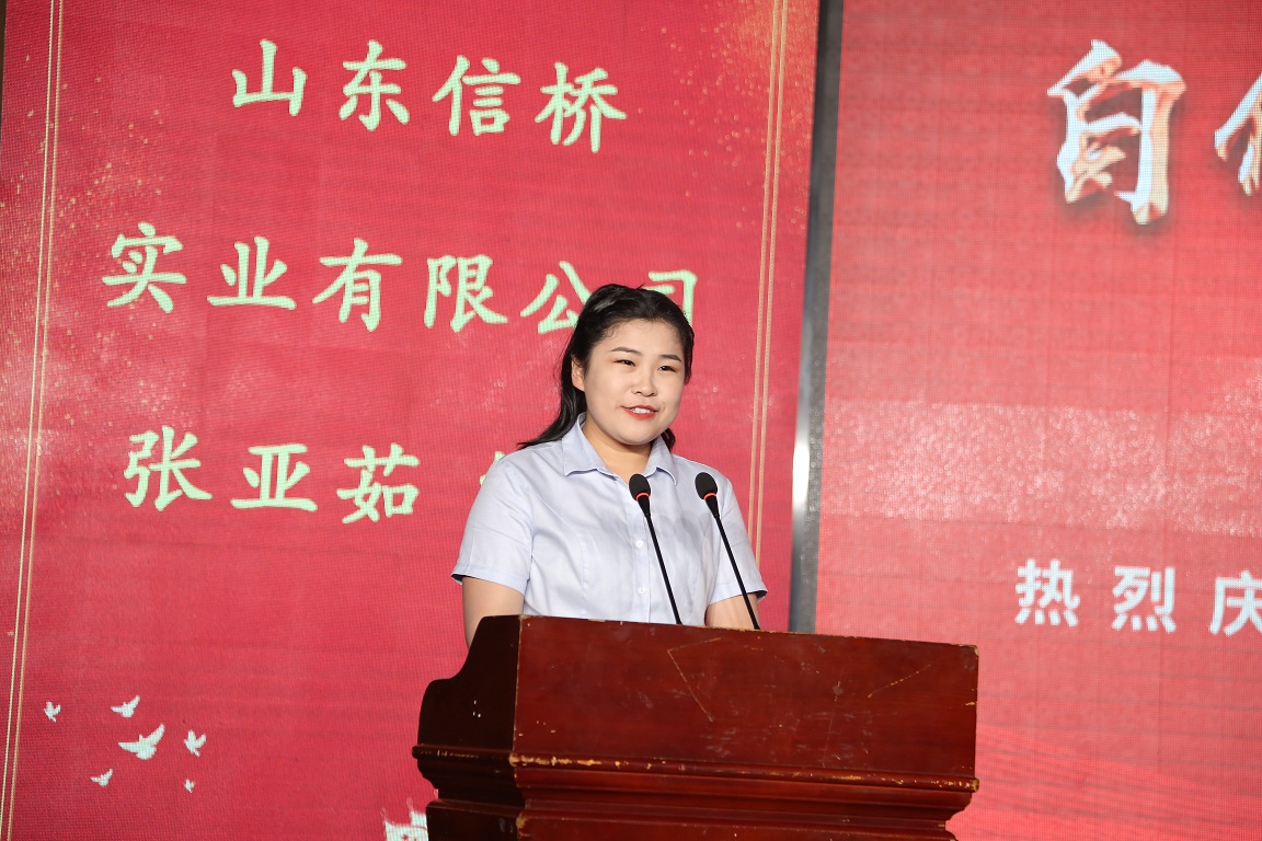 員工代表張亞茹講話,她是青年一代的代表,代表了從校園進(jìn)信橋的一代,感慨了信橋二十幾年的發(fā)展,感謝信橋給予她的財(cái)富和能力。
